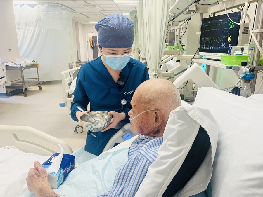 21岁的夏米佳照顾心衰老人,将国际专业照护理念带入上海七院“免陪照护”病区。